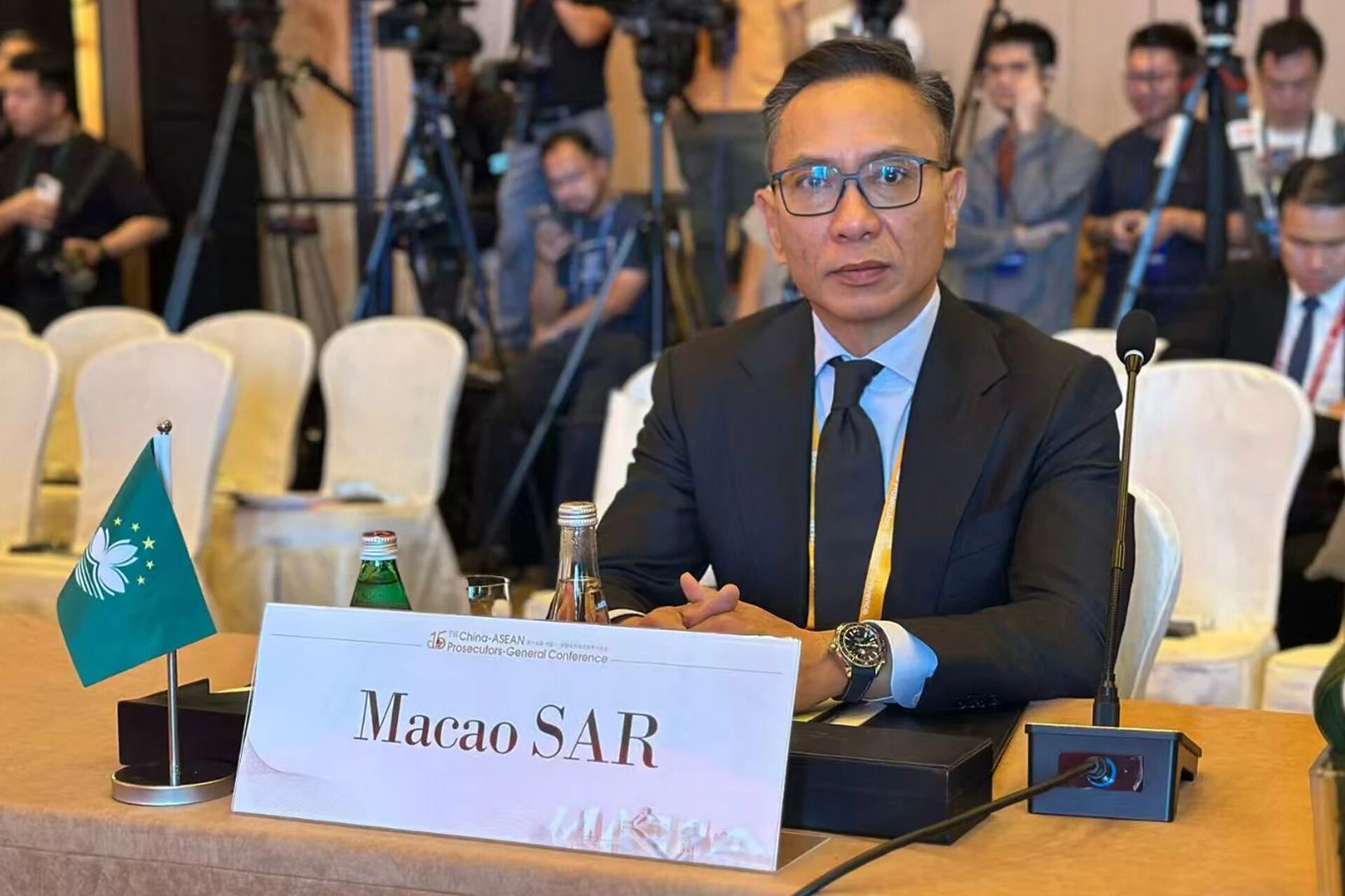9月23日,第十五届中国—东盟成员国总检察长会议在香港特别行政区召开,会议由中华人民共和国最高人民检察院主办,香港特别行政区律政司承办,主题为“数字时代打击洗钱、腐败犯罪及资金追缴”。中国首席大检察官、最高人民检察院检察长应勇率中国检察代表团出席会议。开幕式上,应勇和香港特别行政区行政长官李家超、律政司司长林定国分别致辞。开幕式后举行全体会议,应勇和与会东盟各成员国检察代表团团长、中国香港特别行政区律政司司长林定国、中国澳门特别行政区检察院检察长陈子劲围绕会议主题分别作主旨发言。